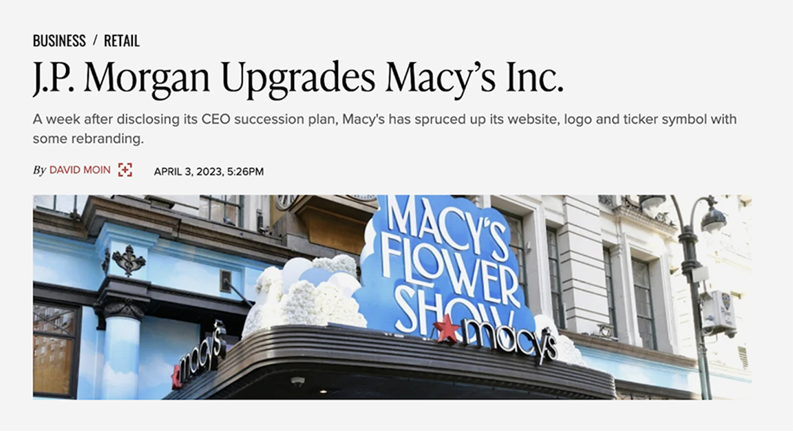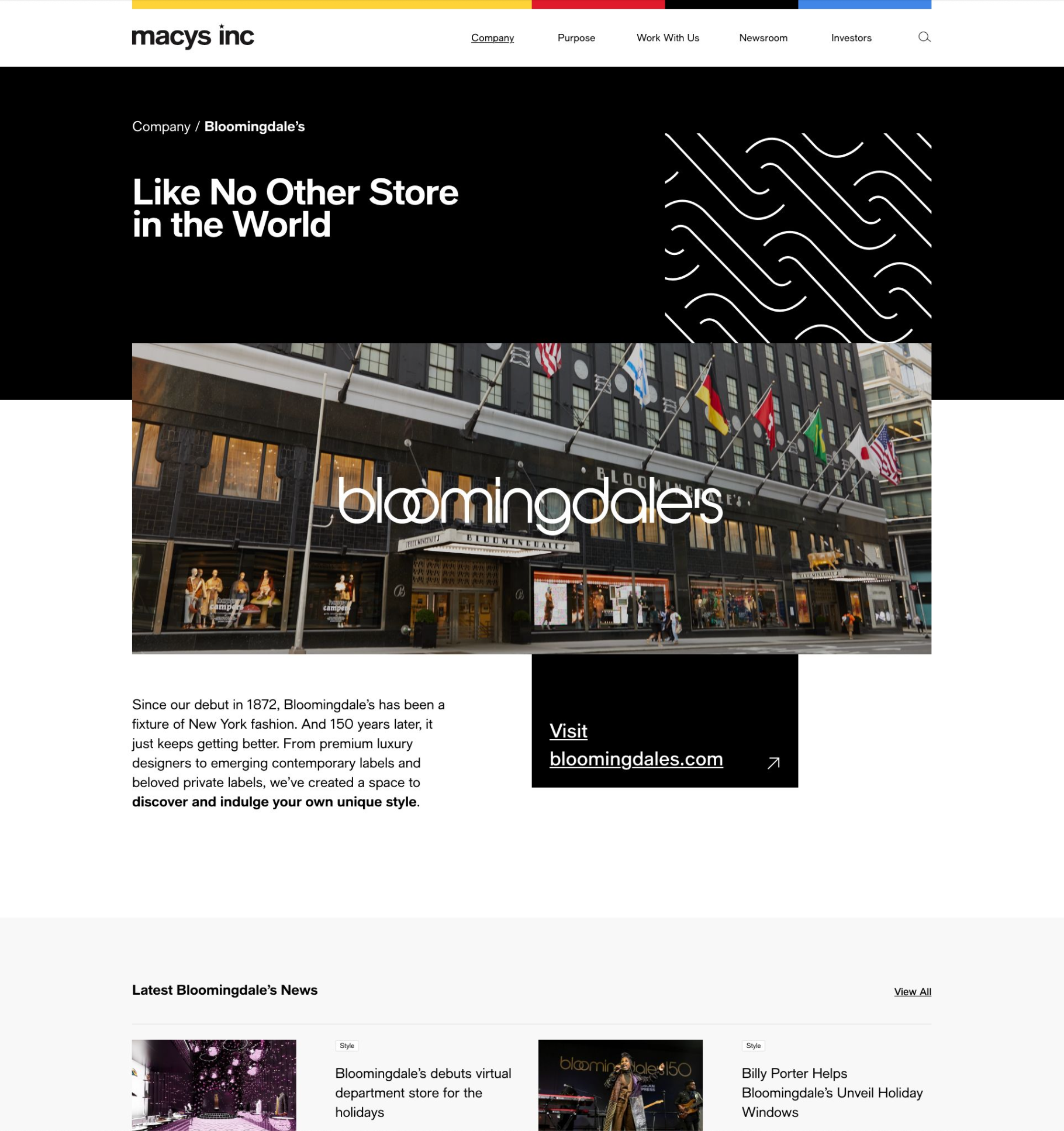 The project was created in 5 agile sprints leading up to the CEO succession announcement, and within 5 days, J.P. Morgan upgraded Macy’s stock. We’d like to think the new branding was a factor. Perhaps even more rewarding was the pride expressed by colleagues from all three brands seeing their teams represented for the first time.
